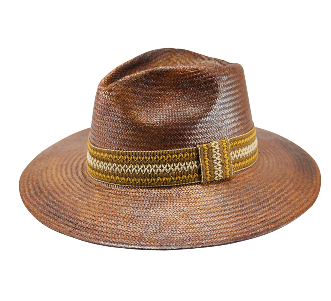 The Itzia Explorer Straw Hat is a bohemian-inspired, lightweight hat made from hand-woven palm in a rich rust color. This fedora-style hat features a 3" brim and a unique mustard and olive elastic band, blending style and comfort. With an adjustable inner band, it offers a one-size-fits-all fit. Artisanally crafted in Mexico, the Itzia Explorer is perfect for adding a touch of effortless elegance to your look.