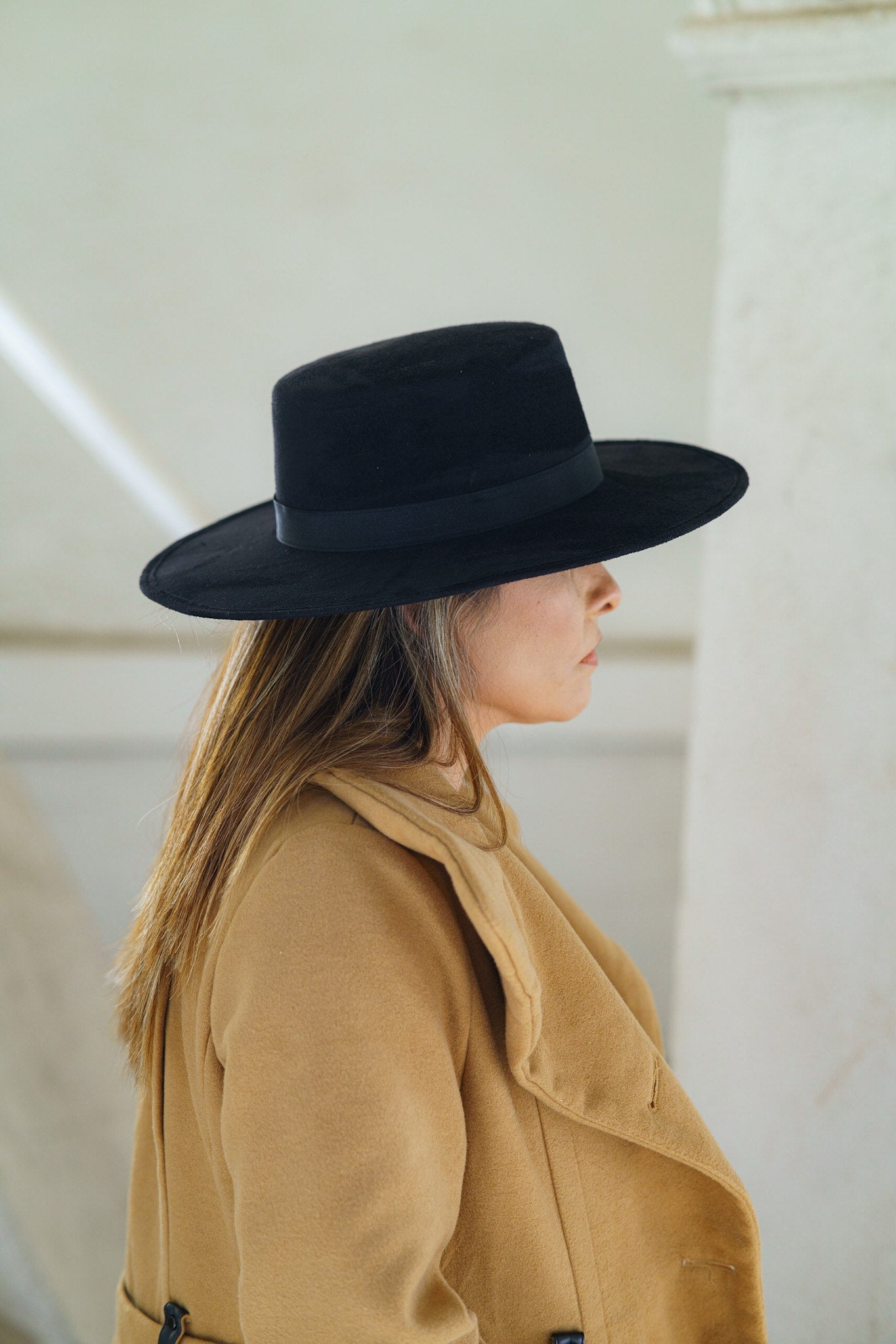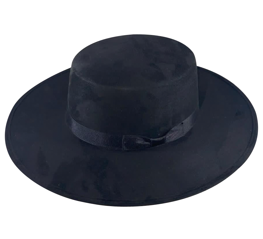 The Olga Cordobés is a bold, super-stiff suede hat with a wide 3½" brim and a classic flat crown, often recognized as a timeless "Boater" style. Finished with a sleek black ribbon band and a comfortable fabric inner band, this hat is versatile enough for any season. Crafted by artisans in Guanajuato, Mexico, the Olga pairs perfectly with removable bands, sold separately, for added personalization. A staple piece that complements any wardrobe.