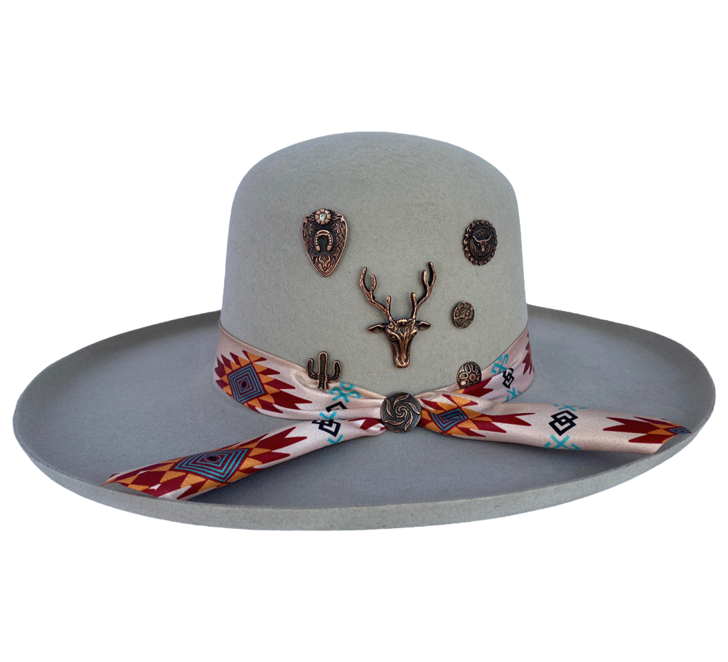 This wool cowboy hat showcases a 4" brim, as well as a western band decorated with pins and a genuine leather sweatband. Each hat is carefully handcrafted in Mexico for timeless quality and style.